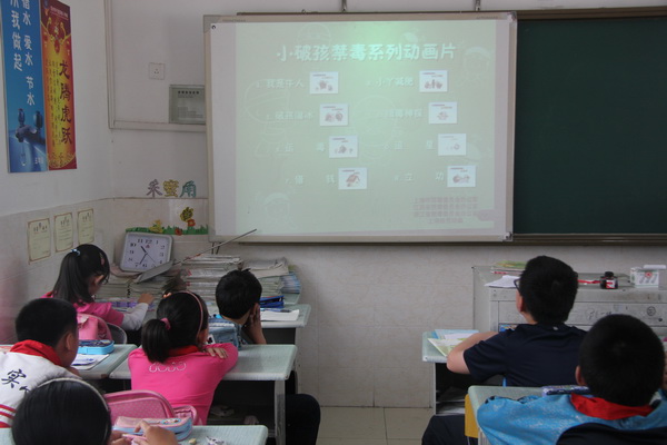 禁毒工作站的工作人员还带来毒品知识问答卷以及禁毒系列动画片,学生们通过