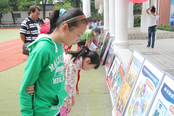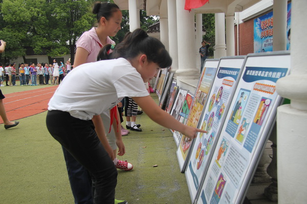 平直实验小学作为苏州市级禁毒示范学校,每年的六月都会抓住禁毒日这一契机,在校园内开展毒品预防教育活动。今年六月,在禁毒日来临前夕,我校与双塔街道禁毒工作站合作,联合开展了《珍爱生命,远离毒品》主题活动。活动中,陆静超老师首先作了题为《珍爱生命,远离毒品》的国旗下讲话,之后组织学生参观了工作站人员带来的毒品预防教育展板。通过生动、直观的图片和漫画,学生们了解了什么“******”、“新型毒品”、“贩毒”、“艾滋病”……“原来这就是罂粟花,能制成毒品的。”,“吸毒、贩毒是要被抓起来的啊!”孩子们懵懂之中的了解足以让他们警觉,也让我们知道了禁毒宣传的重要性。
