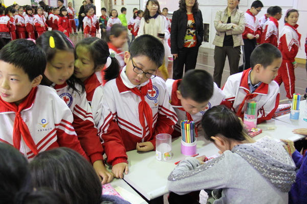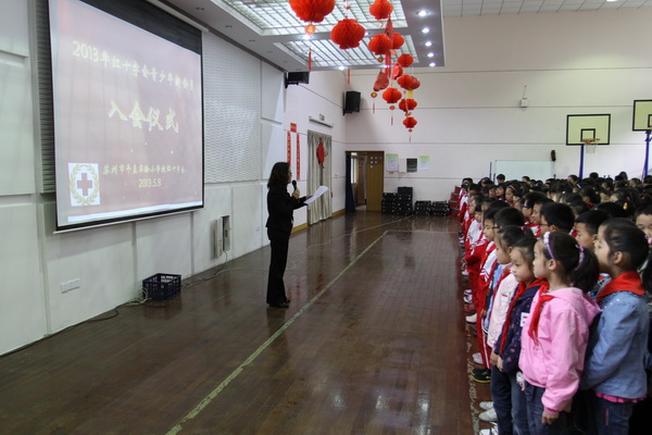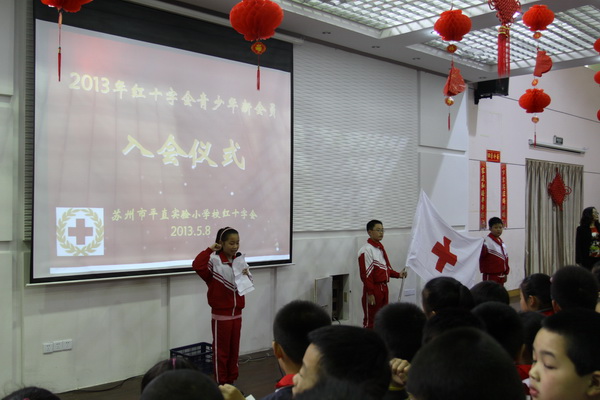 苏州市平直实验小学校是苏州市红十字示范学校,每一年学校都组织红十字青少年会员在每一个时令节日前往社区、福利院等地慰问孤老,也在红十字纪念日这一天上街宣传环保、科普、法律、健康教育等方面知识。纪念日当天,学校又吸收新一批的少年儿童红十字会员投入到“人道、博爱、奉献”的洪流中来。本次学校红十字会新会员入会得到了师生的积极响应,共收到了三年级学生递交的申请书90份,孩子们怀着一颗仁爱之心,本着“人道、博爱、奉献”的精神,积极要求加入红十字会组织。学校根据上级红十字会文件要求,经学校红十字会商议,苏州市平直实验小学校红十字会秘书长由黄小益老师担任。活动中,校红十字会徐会长发表了激情洋溢的讲话,她不仅向新加入这个组织的会员们介绍了国际红十字会的历史沿革、组织精神,还细数了少年儿童如何尽自己所能积极参与到“救死扶伤、扶危济困、敬老助残、尊师爱幼、助人为乐”的活动中来,为社会尽责,为人类的进步贡献力量。与此同时,活动中校红十字会的青少年会员们还通过现场手绘爱心画信的方式向雅安灾区的小朋友传递我们的心意,宣扬红十字人道主义精神,与今天入会的新会员一起“携手为人道”,共创和谐社会。活动最后,九十多名新会员们亲手接过校红十字会领导颁发的十字会会徽、会员证及章程手册。