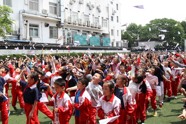 全校学生放飞纸飞机,让纸飞机带着他们的科技梦想飞上蓝天