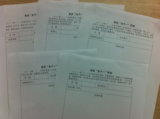《姑苏区教育体育系统“闻一知十,以百带千”党建创新项目实施意见》强烈地推进着学校基层党组织建设工作。为了让“闻一知十,以百带千”的目标要求覆盖到每个党员,影响到每个教师,惠及到家庭、社会,平直实验小学辅导区党总支本年度将开展党员“五个一”活动,认真落实局党委“闻一知十,以百带千”党建创新项目建设。“五个一”活动以“一助一”、“一联一”、“一带一”、“一促一”、“一帮一”的方式展开,活动对接贫困、学困、德困学生,对接群众,对接教育、教学和管理工作第一线,对接社区……党总支将运用好“助、联、带、促、帮”的工作形式,打造学校党建工作的新局面,形成学校党建新机制。党支部制作了各类表格,要求党员做好活动记录,支部将积累汇总好活动的过程性材料,定期进行小结交流。党员参加活动的表现,将作为党员年度目标考评的一项实质性内容进行自评、互评和总评。借此契机彰显党员的先进性,提升学校党建工作质量。
