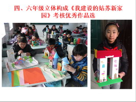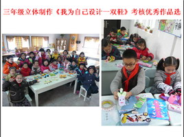 “学生第一!”我校美术教研组今年教研活动时始终围绕这一主题。在课题引领下,组长吴子牛老师带领专职老师们开动脑筋,鼓足干劲,除了指导学生学习美术教材上的知识技能外,还结合校本教材内容进行补充教学,为孩子们设置了具有创新空间的开放性考核方式。考核分为平面绘画和立体构成两大板块,孩子们可在两大考题中灵活自主地选择,真正体现自主学习、自主探究。