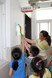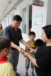 六月二十一日的早晨,学校行政向各班赠送菖蒲艾蓬,把昭忠节的活动推向了高潮。徐玉英校长、杨红霞书记、黄裕鸿副校长、陆虹教导等人将新鲜水润的菖蒲、艾蓬送到了每个班级。