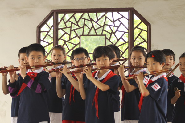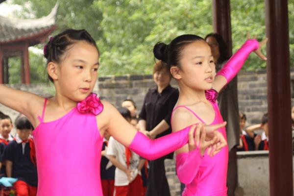 二(1)班学生用竹笛演奏了一曲曲动听的儿歌,悠扬的笛声缓缓地飘遍园林的每个角落,孩子们禁不住也随着曲子哼唱了起来;一曲由二(2)班集体学生演唱的《大风车》赢得了孩子们暴雨般的掌声;二(3)班集体学生演唱了一首首欢快的儿歌,他们专注的表情、可爱的动作以及欢快的歌声使得现场的观众跟着一起欢唱起来。在现场气氛的带动下,二(4)班学生抑扬顿挫地进行集体朗诵《快乐的节日》;二(5)班两位小姑娘当场秀了两段舞蹈《太湖美》和《俄罗斯舞步》;二(6)班两位女生演绎了动感而又活泼的双人拉丁舞,赢得了现场观众的热烈掌声。孩子们纯真的演出、稚嫩的歌声、可爱的舞姿,如一朵朵美丽的鲜花,绽放在定园的各个角落。