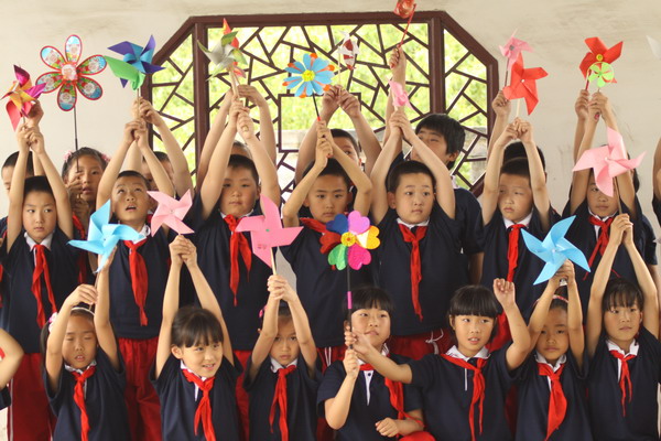6月1日,平直实验小学二年级的孩子们穿上整齐的校服,系上红领巾,走进苏州古典园林——定园,孩子们在大自然中载歌载舞欢度“六一”。