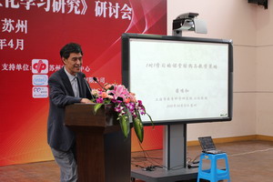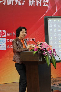 江苏省电化教育馆尤学贵馆长发表重要讲话,对参与本次研讨会的各位领导、专家和来宾表示衷心的感谢。充分肯定了苏州沧浪区在信息技术支持下的教育改革,并希望苏州市平直实验小学在“十二五”规划课题《信息技术支持下的个性化学习研究》的指引下,走在教育信息技术研究的前列!