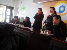 最后一个环节教学片断课件设计制作可谓是是本次比赛的重点。7位老师就同一课题钻研教材,有思想有针对性地设计一个教学片段的课件,并向在座的评委老师阐述自己的教学思想。老师都从学生的角度设计出符合学生认知水平的课件,有的简洁大方,简明扼要,让学生对学习要求一目了然;有的形象灵活,运用动画FLASH效果,在寓教于乐中学生有了直观意识。充分地体现出了新课标中指出的“学生是课堂的主题”。