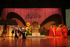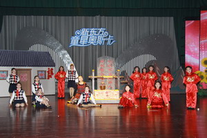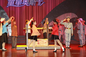 《红井(The Red Army Well)》是我校经过深思熟虑最终选定以红色主旋律为题材进行编排的情景剧。尽管有了前三年的优异成绩,但今年大家没有丝毫松懈。为了今年三月份的决赛,在徐校长和朱副校长的带领下,筹备工作从去年年底就紧锣密鼓的展开了。从剧本的编纂翻译、台词的推敲,到演员的挑选、舞群的编排,甚至道具的采购、灯光的设计,全体英语组老师以及负责音乐舞美的