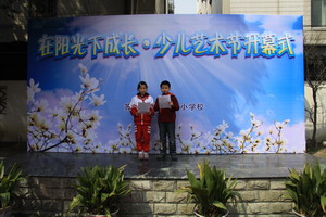 活动一开始,主持人就向全校师生宣布了一个喜讯:英语情景剧《红井》获得了第四届童心奥斯卡英语情景剧银奖,最佳指导奖,最佳剧本奖三项大奖。学校领导为演员代表及辛勤指导的老师们颁发了奖项,全校师生以热烈的掌声向他们表示祝贺。在总校杨书记、分校赵校长的一声令下,2012年平直少儿艺术节正式开幕,孩子们兴奋地举起右手,大声地呼喊出本次艺术节的口号:放飞梦想、展我风采,我秀我精彩。开幕式上徐校长致词:希望学生们勇敢的展现自己的风采,放飞自己的梦想,用心感受艺术,用行动实践艺术,把握这一年一次的机会,让艺术之花开遍平直的校园,更让艺术之花开遍学生的心灵,伴我们一生!最后,在轻快的小组唱中,开幕式落下了帷幕。