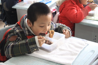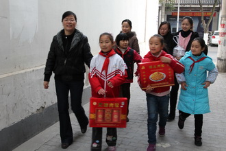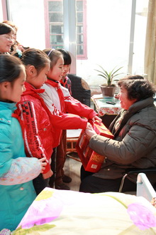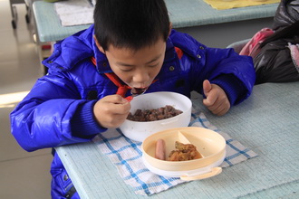 完成了食材的收集,今天中午孩子们就吃到了热腾腾的腊八粥!“看看,这是我带来的桂圆。”“瞧瞧,这是什么呀?”“这是芡实呀,就是鸡头米。”孩子们个个欢天喜地,别提有多高兴了。当师生们都沉浸在享受腊八粥美味的快乐时光之中时,也不忘关心我们身边的人。学校的党、团员教师代表和学生代表分别将温暖送去给培智学校的学生和社区的两名孤寡老人,让他们在严寒的冬季也能感受到平直师生对他们的暖暖的关怀。