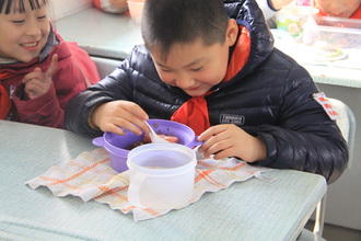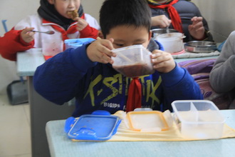 特殊的腊八粥,并非是指在腊八粥里加了什么山珍海味,而是因为这锅腊八粥是孩子们自己收集了食材而煮的粥。孩子们知道,以前的腊八粥是家家户户在年底打扫卫生时,将自家剩下的大米、红枣等食材放在锅里而煮的粥。如今生活条件好了,虽然我们不需要为了过上一个暖暖的冬季,而到处觅食,但古往今来这种勤俭节约的美好品质却是我们值得学习和传承的,所以从本周一开始,孩子们就开始在自家收集腊八粥的食材,你一把红枣,我一把莲芯,他一小袋大米,大家纷纷行动了起来。可是,每人就准备那么一点点的食材,能煮粥吗?答案当然是能!每人都准备一小份食材,全校这么多的孩子,2天时间里就收集了很多很多的食材。通过收集食材的活动,孩子们不仅知道了要勤俭节约,还懂得了聚少成多的道理:个人的力量是渺小的,但只要团结在一起,集体的力量可是无限大的。