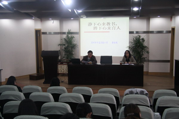 2011年11月23日,苏州市平直实验小学全体教师齐聚报告厅,在徐玉英校长的主持下,一起分享了平直校长团队参加校长研修活动后的心得体会。参加此次活动的徐玉英校长,黄裕鸿副校长和杨红霞书记分别从不同的角度向我们阐述了教师职业。