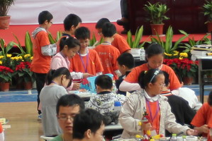 随着裁判长的一声令下,我们的队员立刻开始了创意制作!从锯木板,钻孔,使用热熔枪安装粘合各个零部件,到设计制作创意造型,学生们个个表现得得心应手!这可是他们比赛前刻苦训练的结果啊!