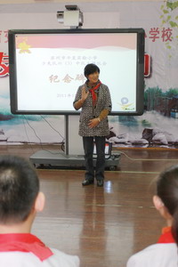 检查小组一行在徐校长和大队辅导员的陪同下,巡视了学校的少先队环境布置、参观了队室、参加了由六(3)中队开展的“纪念碑前”队会,最后才仔细的查看了台账资料。