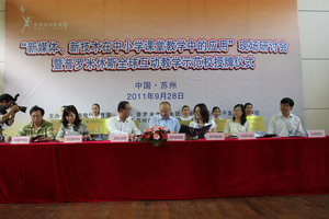 苏州市电化教育馆副馆长倪仲平也在会上强调:“希望通过以点带面的方式,搭结构、推应用、建资源、树标准,为整个苏州地区互动电子白板在教学中的常态应用,搭建一个应用平台。”