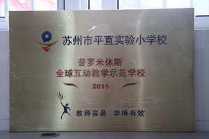 2011年9月28日,“新媒体、新技术在中小学课堂教学中的应用”现场研讨会暨普罗米休斯全球互动教学示范校授牌仪式在苏州市平直实验小学校举办。会议当天,来自苏州市(区)电教馆(中心)、教育技术室(中心)、信息中心、教培研中心、教研室(吴江市、工业园区、高新区),各直属学校的领导、校长和200多位一线教师,参加了本次活动,就互动电子白板的应用与推广,进行了广泛的交流和研讨活动。苏州市电化教育馆倪忠平副馆长、苏州市沧浪区教育局唐丽艳副局长、普罗米休斯中国区副总经理盛登峰先生、高级教学顾问李国云先生等人亦莅临出席。