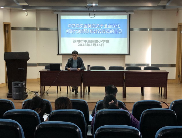 2018年3月14日下午,苏州市平直实验小学校开展师德师风培训,组织全体教师认真学习了《中共中央国务院关于全面深化新时代教师队伍建设改革的意见》。