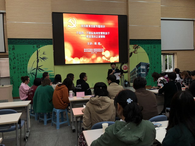 2018年4月4日下午,平直实小辅导区党总支部、善耕实小辅导区党总支部联合开展面向全体党员的教育技能专题培训,特邀请了国家二级心理咨询师、美国正面管教协会注册家长讲师、美国正面管教协会注册学校讲师,苏州工业园区第三实验小学顾超校长作题为《不惩罚、不娇纵地有效管教孩子——教室里的正面管教》互动式培训。