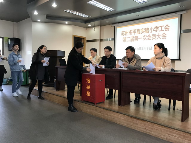 2018年4月9日下午,根据《中华人民共和国工会法》、《中国工会章程》的有关规定,以及上级工会要求,苏州市平直实验小学校工会在学校报告厅隆重举行了学校工会换届选举大会。整个选举大会议程严格按照学校基层工会选举办法进行,选举产生了学校新一届工会委员会。
