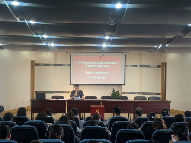 根据区教育党工委统一部署,2019年5月22日下午,苏州市平直辅导区三所学校教师集中平直实小,分三个会场,对各自学校中层以上的干部进行了民主测评。大会由各校工会主席主持,全体教师参加会议。