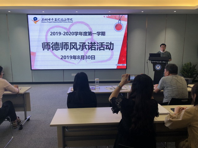 随后全体教师郑重签订了《苏州市平直实验小学校教师师德师风承诺书》。