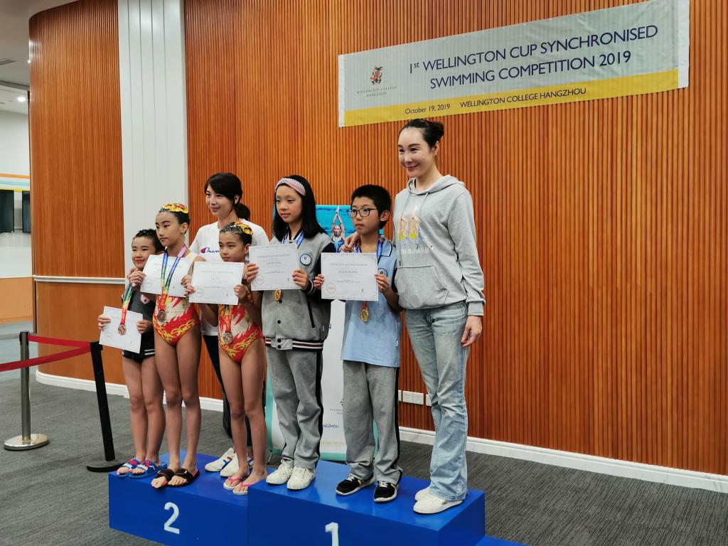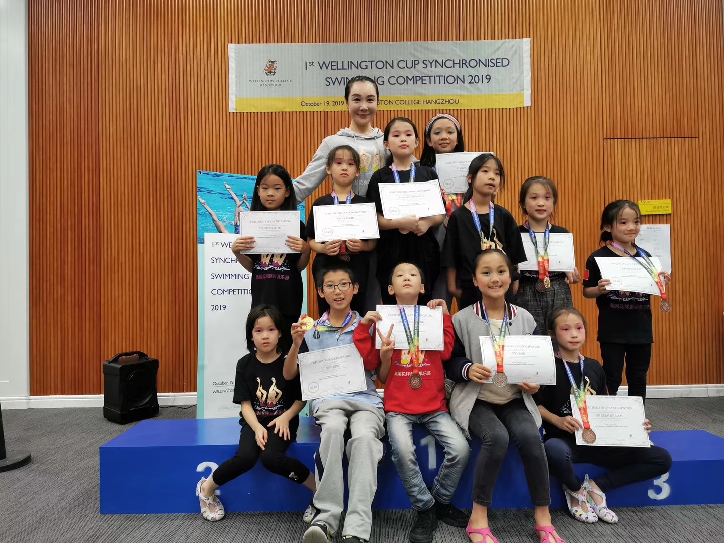 10月19日,平直实小花游队前往杭州参加惠灵顿杯花样游泳邀请赛。