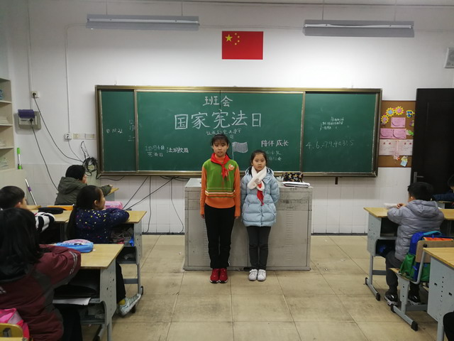 学校结合各班学生的学习、生活实际情况开展了“国家宪法日”主题微队会活动。有的班级通过青少年违法案例视频,进行小组讨论学习;有的班级从培养行为习惯谈如何做个守法的好公民;有的班级“法治小专家”进行现场说法,对宪法条文进行讲解。各班级均制作了相关课件,新颖灵活的教育形式,贴近学生实际的教育内容,让每一位学生深入了解宪法,尊崇宪法精神,增强法治观念,有效推动了校园的法治文化建设。