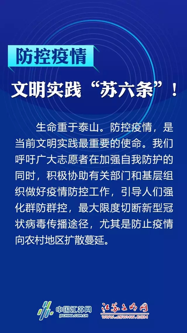 防控疫情 文明实践“苏六条”!