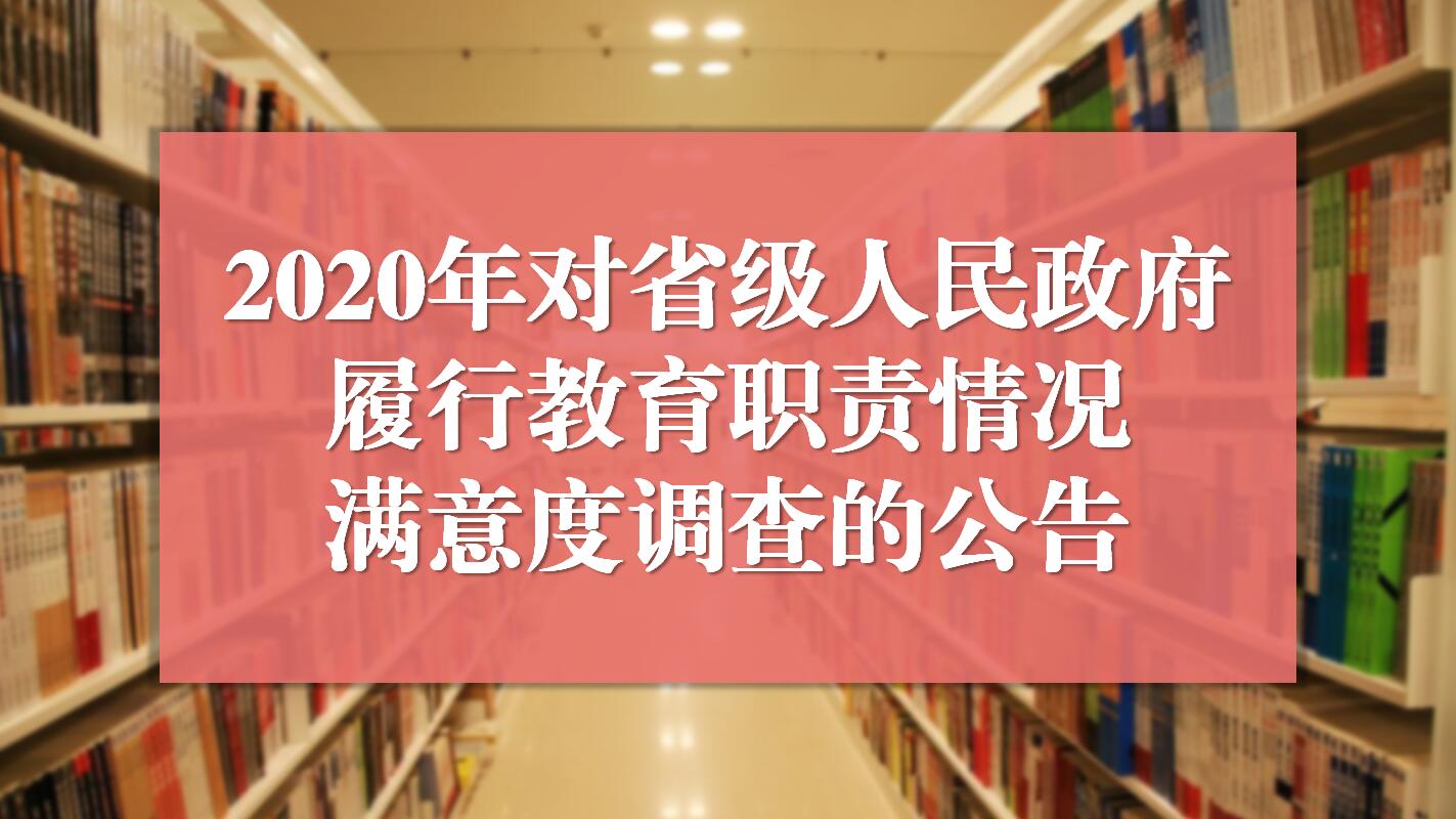 根据国务院教育督导委员会办公室部署,现对省级人民政府履行教育职责情况开展满意度调查。