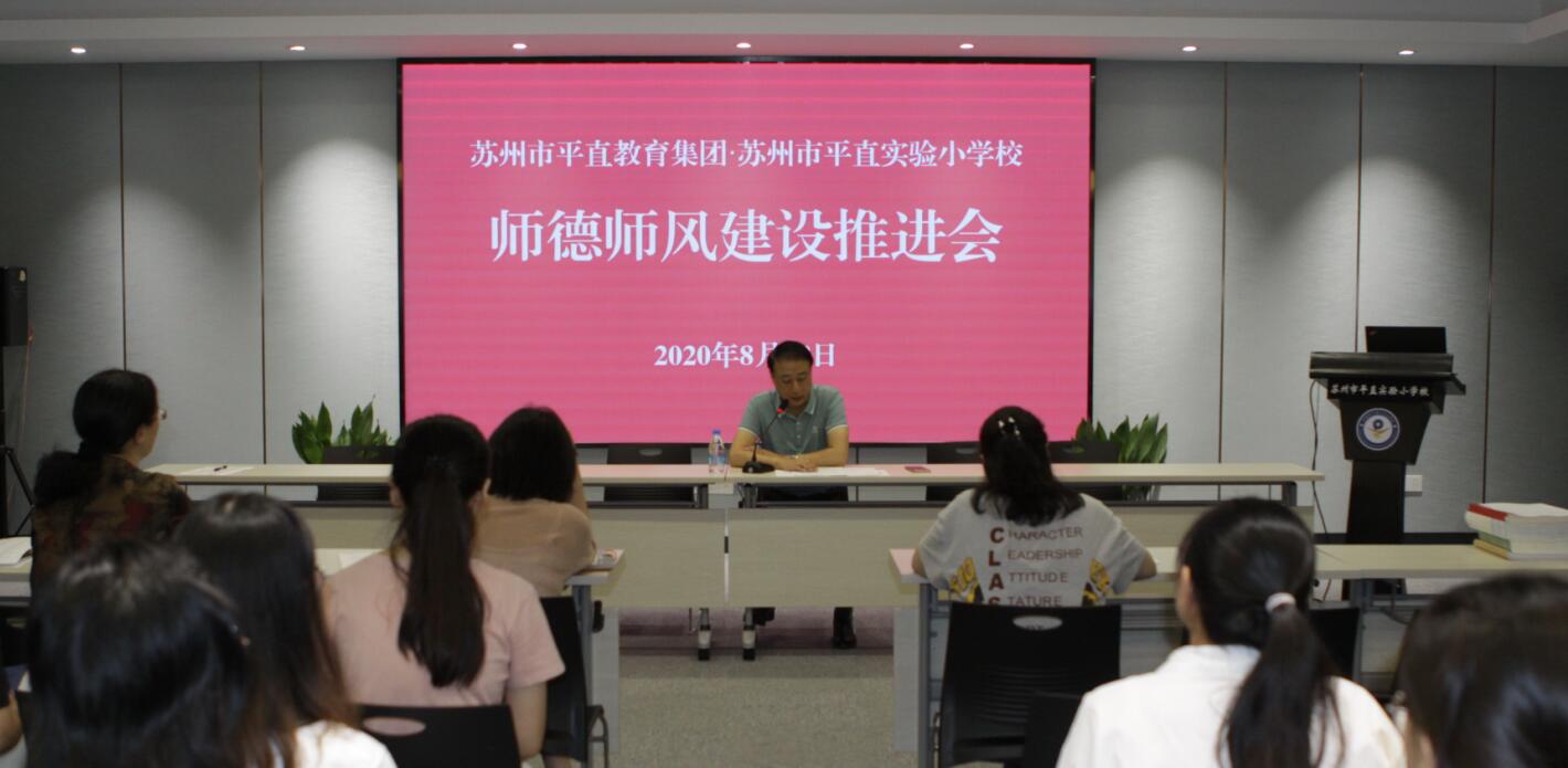 首先,由董晨校长向全体教师介绍了苏州市平直教育集团的成立情况,本集团由五所学校组成,分别是苏州市平直实验小学校、苏州市南环实验小学校、苏州市盘溪中心小学校、苏州市姑胥小学校、苏州市湄长小学。五所学校将合为一体,在整合中实现更优质的发展,在共享中实现创新,在更大范围、更高层次、更深程度上实现教育的公平、优质。董校长还给全体教师进行了师德师风专项培训,结合实际和案例,对教师的师德师风作出具体要求。